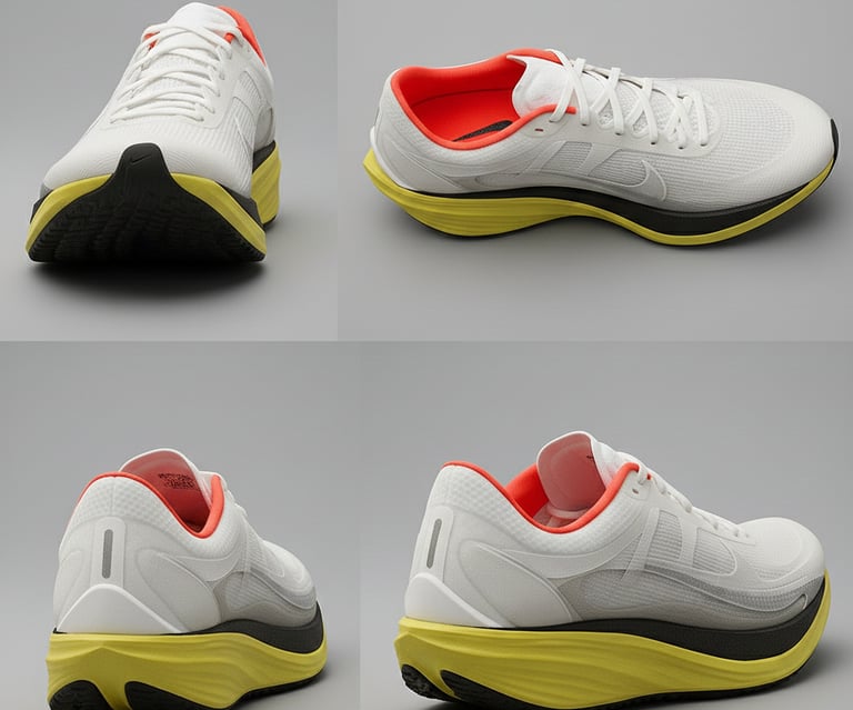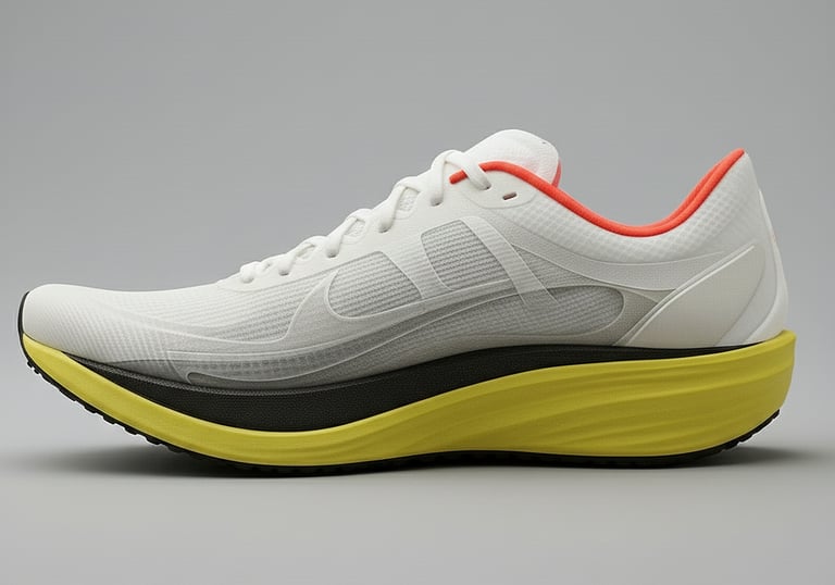 A licensable sole system that integrates a flax-reinforced dynamic plate, engineered to disperse impact while allowing natural forefoot motion and adaptive stability. Unlike rigid carbon systems, it flexes with the foot, maintaining proprioception and comfort across variable terrain.
